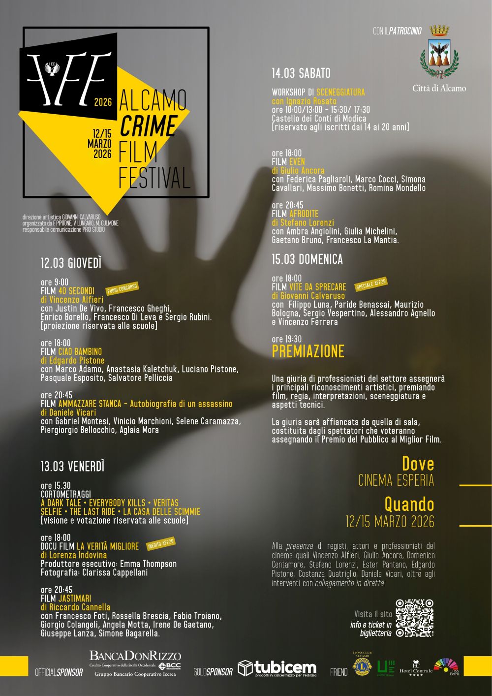A partire dal12 al 15 marzo il cine Esperia di Alcamo propone Alcamo Crime Filmfestival