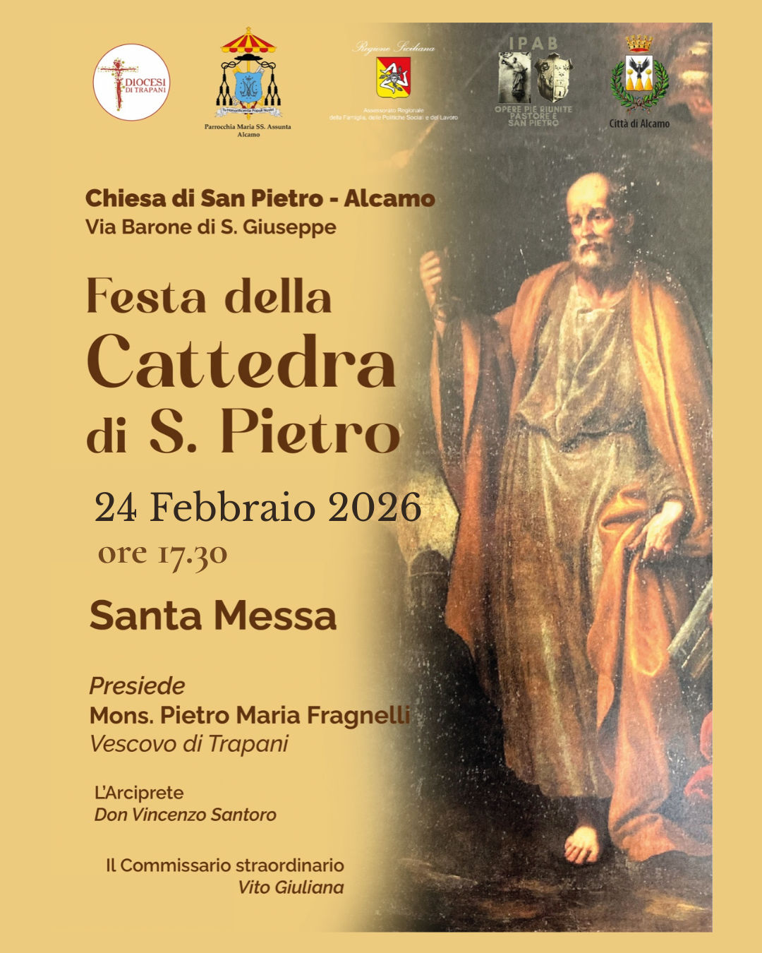 In quella occasione, l’Arcipretura di Alcamo e la Diocesi di Trapani insieme all’IPAB OO.PP.RR. Pastore e San Pietro hanno programmato, a partire dal mese di febbraio 2026, una celebrazione liturgica mensile presso la chiesa suddetta, pertanto domani, 24 febbraio, alle 17.30 il Vescovo, Mons. Pietro Maria Fragnelli darà l’avvio alle celebrazioni periodiche, proprio contestualmente alla festività liturgica della Cattedra di San Pietro.