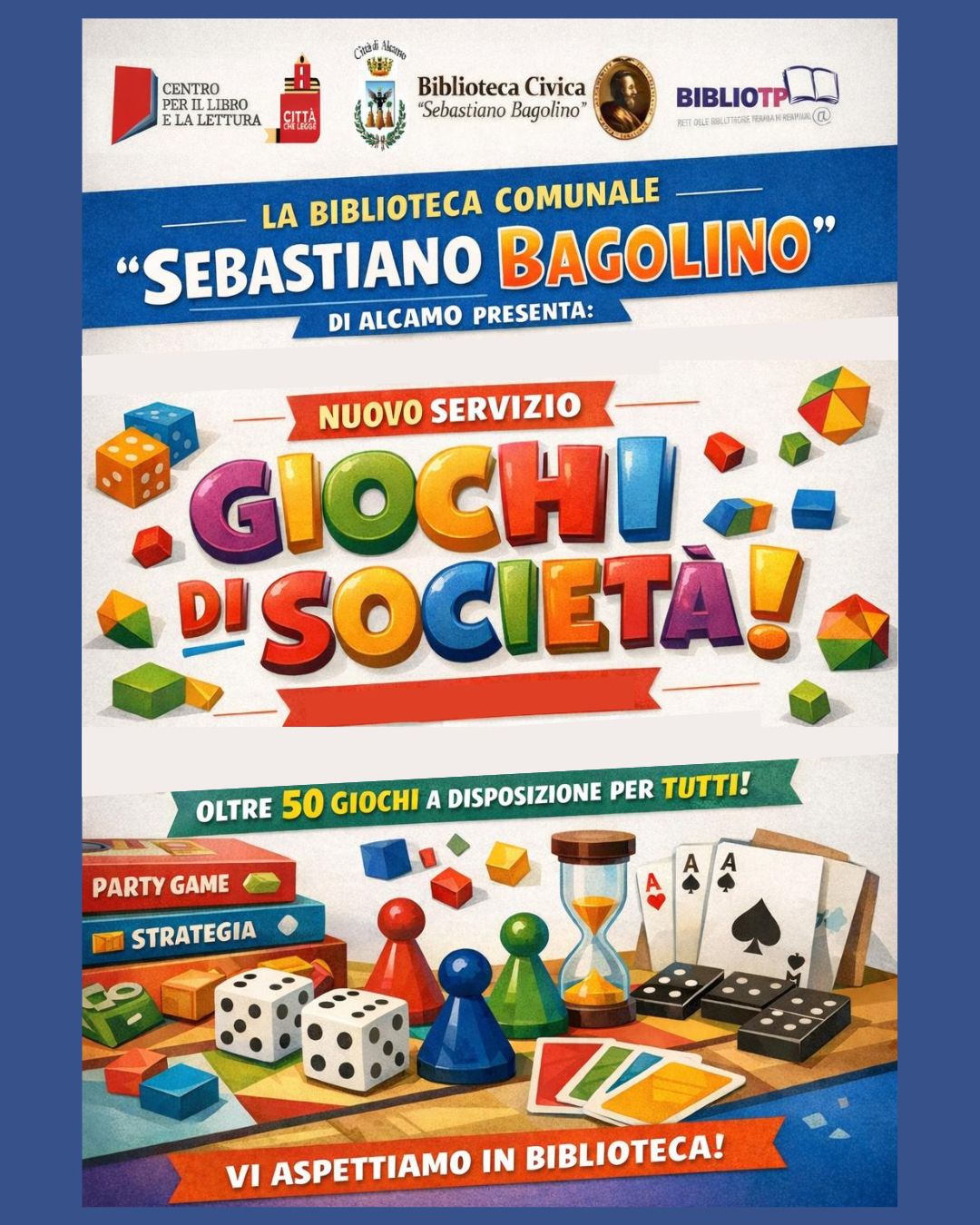 La nuova proposta rientra nella visione della Biblioteca come luogo vivo, dove cultura, divertimento e relazioni si incontrano senza barriere. I giochi di società sono un’occasione per stare insieme, imparare divertendosi e vivere la biblioteca in modo nuovo e coinvolgente.