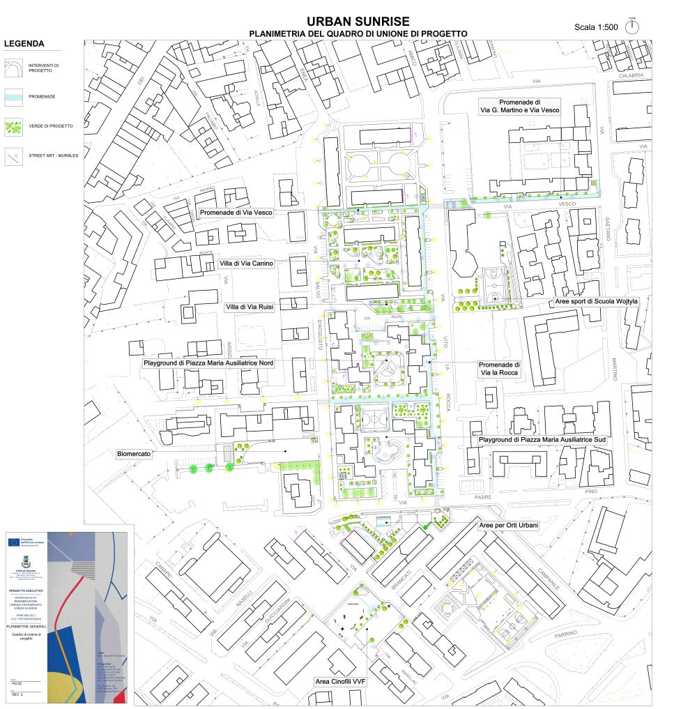 Insieme ai marciapiedi e all’illuminazione, è sulla dirittura d’arrivo la passeggiata, promenade, per collegare il quartiere con via Gaetano Martino e quindi il Viale Italia, così che i poli attrattivi del quartiere possano “avvicinarsi” al resto della zona, percorrendo via Vito La Rocca e non solo, passando per tutti i murales.