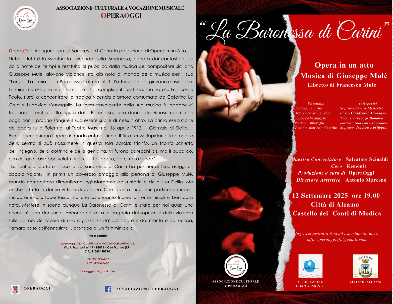 La rappresentazione teatrale con le musiche di Giuseppe Mulè e il libretto di Francesco Mulè ed il coro Kemonia è una produzione a cura di OPERAOGGI e la direzione artistica di Antonio Marcenò.