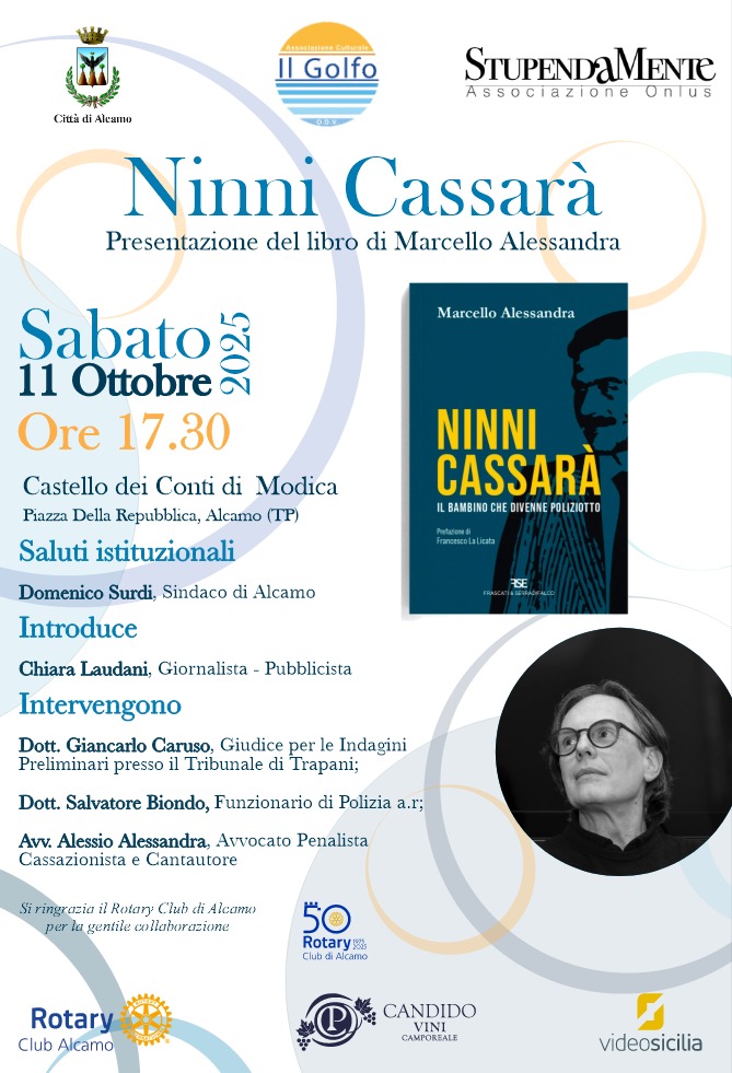 Sarà presentato sabato pomeriggio alle 17.30, al Castello dei Conti di Modica, il libro di Marcello Alessandra dal titolo “Ninni Cassarà. Il bambino che divenne poliziotto”; l’iniziativa è a cura dell’associazione culturale Il Golfo, con la collaborazione del Comune e del Rotary Club di Alcamo.